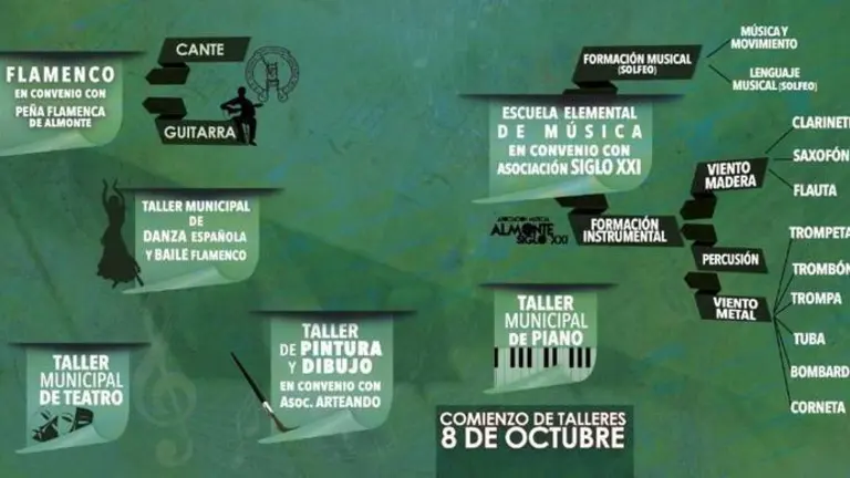 El Ayuntamiento mantiene los talleres de flamenco, pintura y dibujo, teatro, formación musical y danza española y baile flamenco