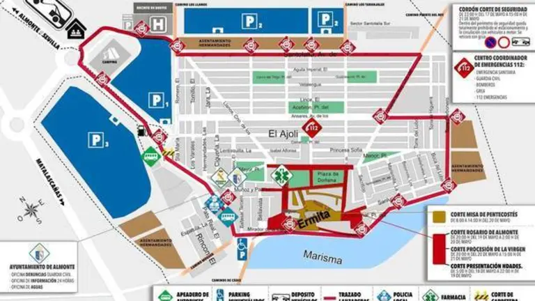 Trabajarán 64 agentes y mandos de la Policía Local con la salida de Emigrantes y 73 con la hermandad de Huelva.