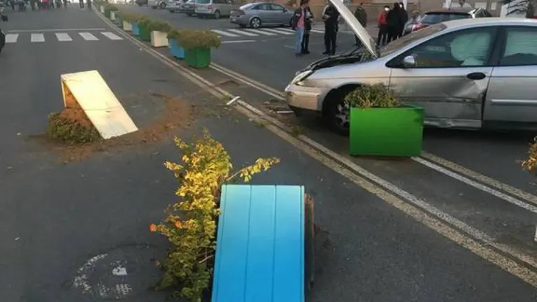 El atropello se produjo marcha atrás y también produjo que se destrozara el mobiliario urbano de la zona