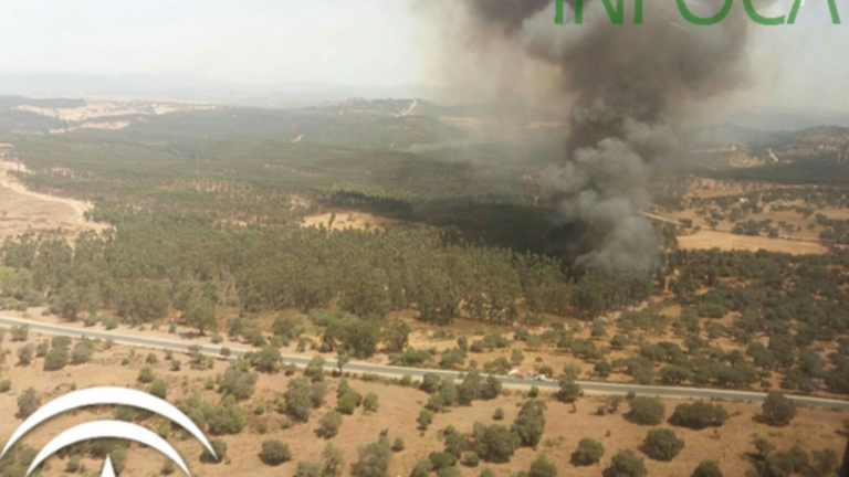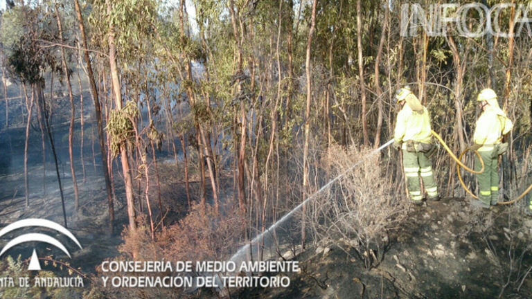 Medio centenar de bomberos forestales ha trabajado durante toda la noche y madrugada para combatir el fuego en el paraje Cumbre del Cerrejón
