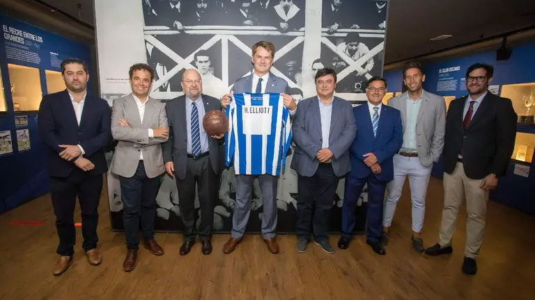 El embajador británico en España, Hugh Elliott, visita el estadio y el museo del equipo onubense, conociendo los detalles de una historia en la que destaca la Copa Seamen’s.