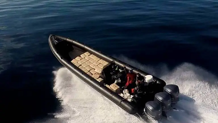 Los tripulantes huyeron al detectar a las patrulleras del Servicio Marítimo; un agente cayó al agua durante la maniobra y fue rescatado sin lesiones.