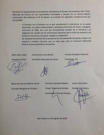 Aunque tras la decisión que tomaba Cádiz, era un rumor a voces, la decisión oficial y final se tomaba hoy en el transcurso de una reunión mantenida en dependencias municipales entre el Ayuntamiento, la Asociación de Carnavaleros Isleños, AC, la Federación de Peñas y Asociaciones del Carnaval, FIPAC y la Asociación Miércoles de Ceniza.