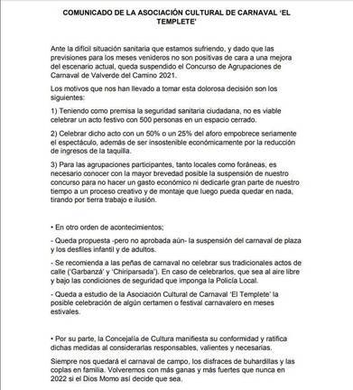 La Concejalía de Cultura ha manifestado su “conformidad” y ha ratificado dichas medidas al considerarlas “responsables, valientes y necesarias”, según la entidad carnavalera, que ha invitado a vivir el Carnaval desde la responsabilidad.