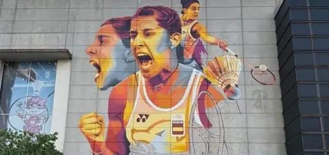 Homenaje a Carolina Marín con el mural más grande de Huelva
