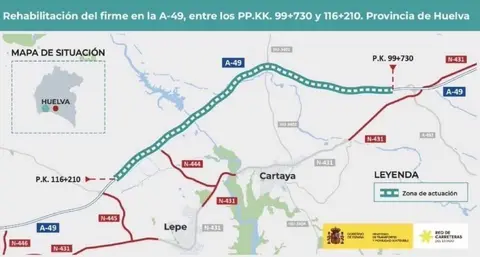 Transportes licita por casi 15 millones la rehabilitación de 16,5 kilómetros de la A-49 entre Cartaya y Lepe