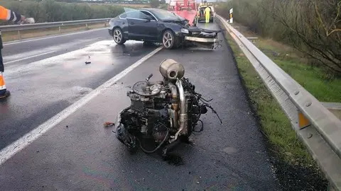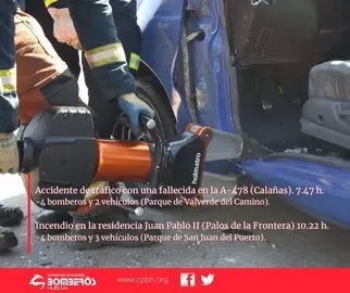 Doble intervención urgente de Bomberos: un accidente y un incendio en Valverde
