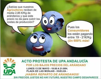 UPA Huelva regalará arándanos el lunes para protestar por la especulación de su precio