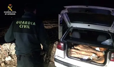 Provincia Pillados en la N-435 con 21 jamones robados en Valverde Redacción 29/mar/2016 La Guardia Civil ha detenido a uno de los ladrones y sigue la pista de las otras tres personas implicadas