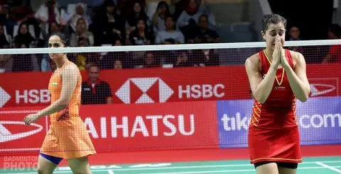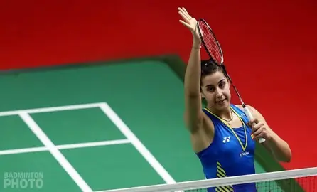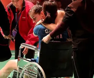 La onubense dominaba con claridad a Saina Nehwal cuando se lastimó la rodilla derecha en un mal apoyo. Intentó continuar, pero no pudo.