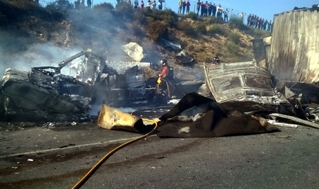 Provincia Dos fallecidos y un herido grave al chocar tres camiones en la carretera A-486 Redacción 13/abr/2014