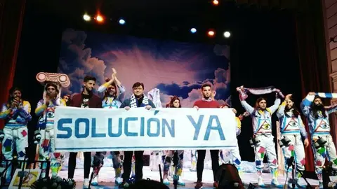 Gabriel Cruz sorprende sosteniendo una pancarta con el eslogan 'Solución Ya' durante una representación del Carnaval Colombino. Es el lema que utilizan los críticos con la supuesta pasividad del…