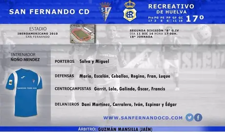 Dos penaltis impiden que el Recre gane en San Fernando (2-2)