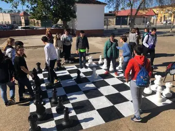 El IES Odiel de Gibraleón fomenta la práctica de este deporte adquiriendo un juego completo de piezas gigantes para el alumnado