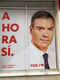 Los socialistas han encontrado el cartel de campaña con la imagen de Pedro Sánchez completamente impregnada de suciedad tras el lanzamiento de huevos durante estos días de puente