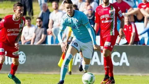 El centrocampista onubense ha sido convocado por el primer equipo del Celta para el partido frente al Villarreal. Si juega, activará una cláusula del contrato de venta firmado con el Decano.