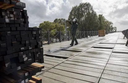 El Ayuntamiento de Huelva ha iniciado esta semana los trabajos de reposición del entarimado y tablazón de madera del antiguo cargadero de mineral de la Compañía minera de Riotinto.
