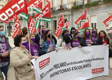 CCOO se ha concentrado con las monitoras escolares para pedir a la Junta que "cumpla su compromiso"