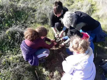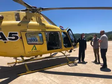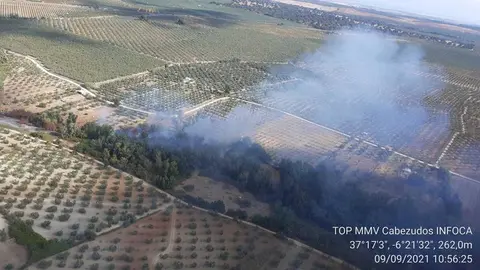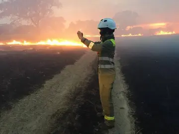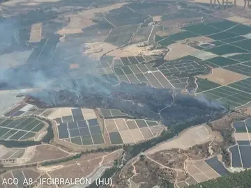 Los bomberos sofocan un fuego en un cabezo de Galaroza