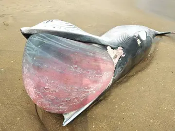 Hallan el cadáver de una ballena de especie rorcual aliblanco en Isla Cristina