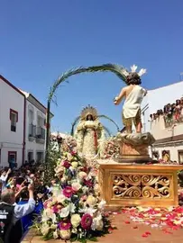 Vecinos y visitantes celebran el peculiar encuentro entre la Virgen de la Esperanza y el Niño de la Bola