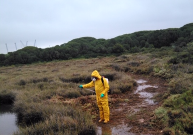 Captan a una manada de buitres devorando a una ballena muerta en una playa de Doñana