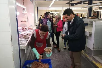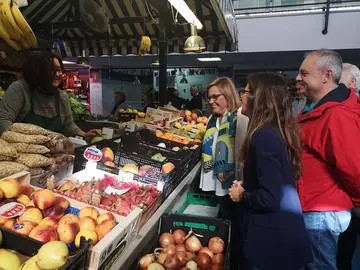 La candidata número uno al Congreso de los Diputados por el PSOE de Huelva, María Luisa Faneca, visita el Mercado de Abastos y los comercios del centro de Ayamonte, junto a la alcaldesa, Natalia…