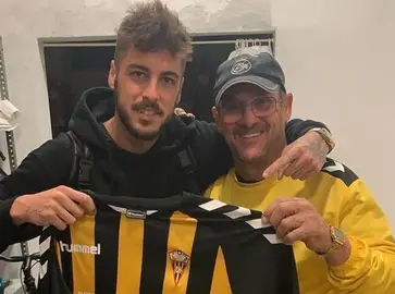Parodia la famosa foto de Gerard Piqué para celebrar que, pese al interés de equipos de superior categoría, el atacante onubense vestirá la aurinegra hasta el final de la presente temporada.