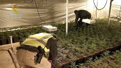La Guardia Civil localiza una plantación de 1.488 plantas de marihuana en la misma nave agrícola destinada a la cría de ganado porcino en el término municipal de la Nava.