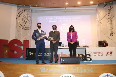 La rectora, Mª Antonia Peña, acompaña al director de la ETSI, Jacinto Mata, en un acto celebrado con aforo reducido en el edificio Jacobo del Barco para cumplir las medidas de seguridad y…